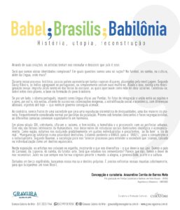 • Exposição: Babel; Brasilis; Babilônia: História, utopia, reconstrução
