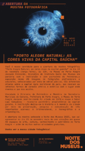 O Fotoclube Porto-alegrense convida toda a comunidade a prestigiar a abertura da mostra “Porto Alegre Natural: As Cores Vivas da Capital Gaúcha”, uma celebração da cidade por meio de olhares que revelam afeto, identidade e experiências visuais únicas. A exposição reúne 29 fotografias selecionadas por Edital Público, trazendo obras de profissionais e amadores que mergulham na riqueza estética de Porto Alegre.