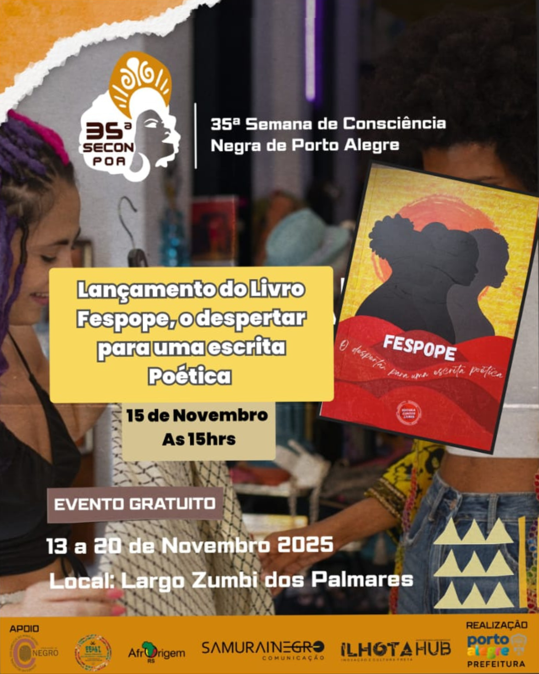O lançamento integra a programação oficial da 35ª Semana Municipal da Consciência Negra de Porto Alegre, que em 2025 traz o tema “Mulheres Negras – Força Ancestral e Protagonismo Presente”. A Semana celebra e reconhece a contribuição decisiva de mulheres negras para a cultura, a arte, a política e a construção de uma sociedade mais justa e plural.