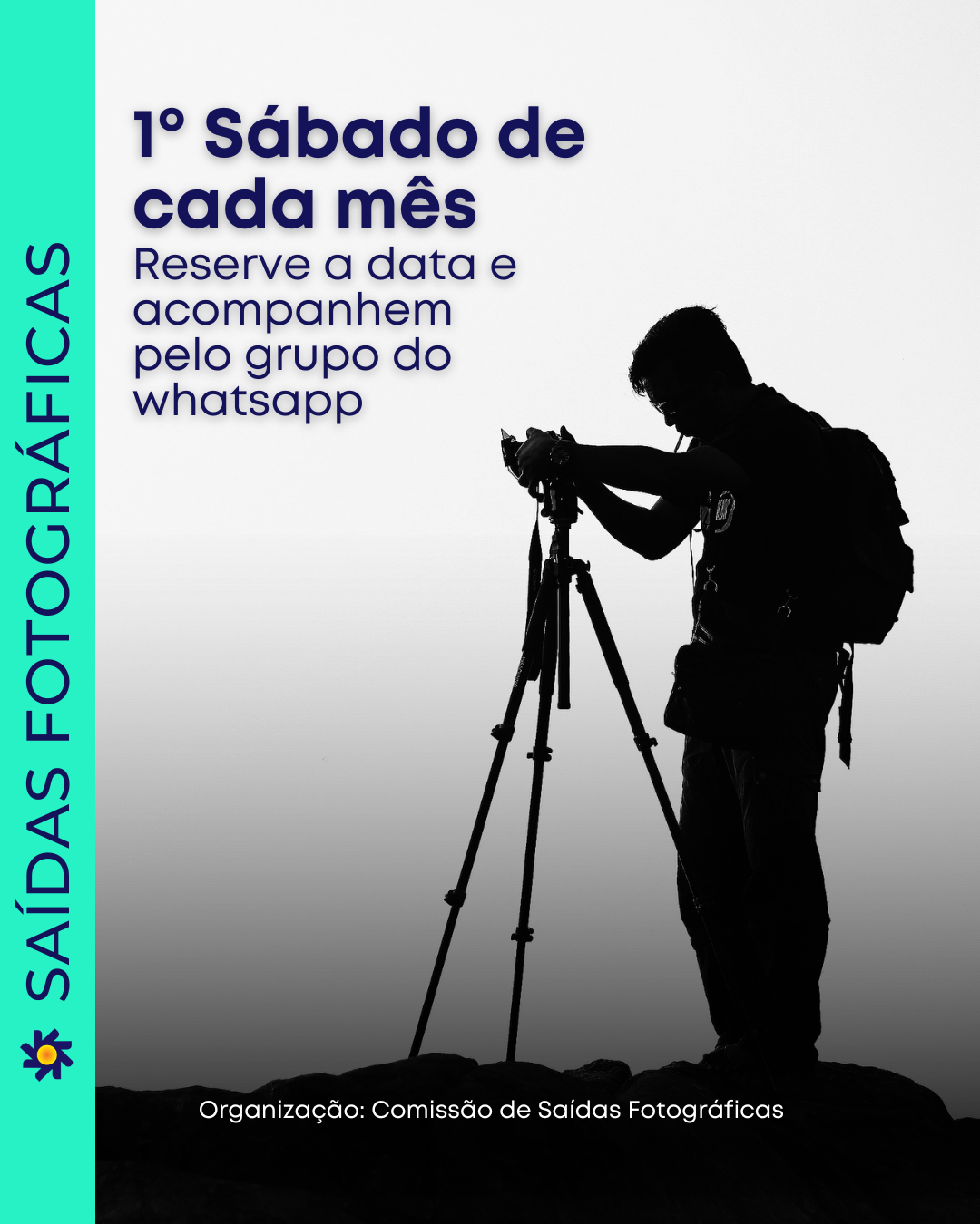 A Comissão de Saídas Fotográficas organiza encontros mensais, sempre no 1º sábado de cada mês, como espaço de prática, troca de experiências e convivência entre fotoclubistas.