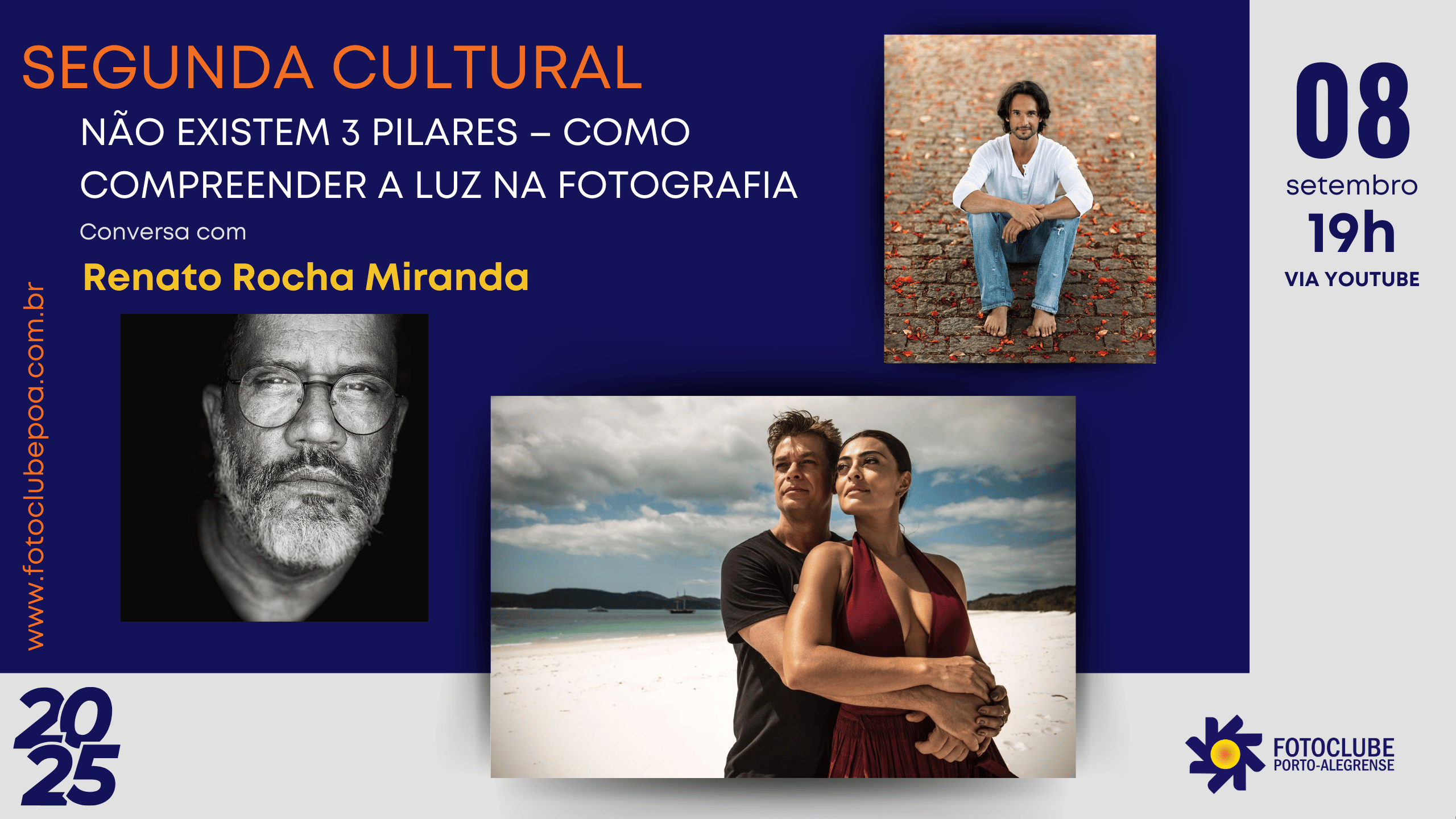 No dia 08 de setembro, às 19h, o Fotoclube Porto-alegrense convida você para mais uma edição da Segunda Cultural, com transmissão ao vivo pelo canal do YouTube do FCPOA.